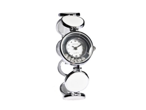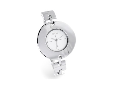 Sinobi - 911/BL - damklocka - analog kvarts - silverarmband i rostfritt stål, Vit, silver, armband