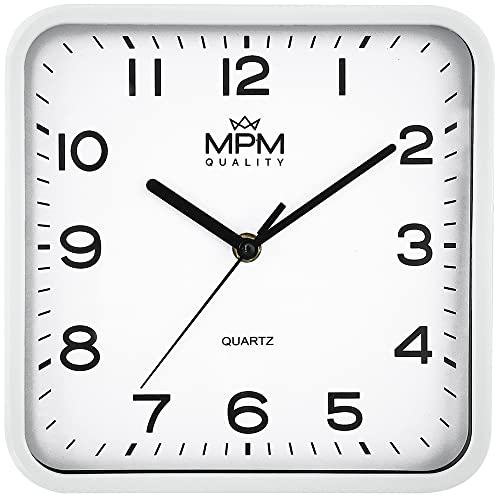 MPM Quality Design plast väggklocka, kvadratisk, arabiska siffror, vit, kvarts rörelse svepande, 220 x 40 mm, klassisk modern, analog väggklocka, väggdekoration, dekoration för vardagsrum, kök, kontor