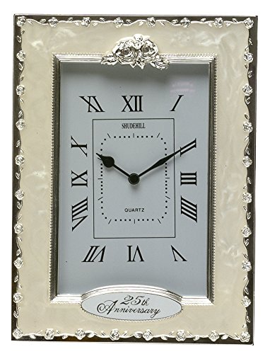 Shudehill Klockor-25:e årsjubileum silver bröllop firande kvarts bordslampa, vit, 19,5 cm x 14,5 cm