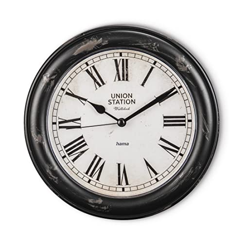 Hama Urban Vintage väggklocka analog (tyst rörelse, kvarts, vit urtavla, batteridrivna diameter 22 cm) svart/vit