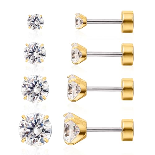 Limerencia titanörhängen med skruvlock, 4 par medicinska stiftörhängen allergivänliga stiftörhängen för känsliga öron mode smycken för damer och män (Vit kvarts)