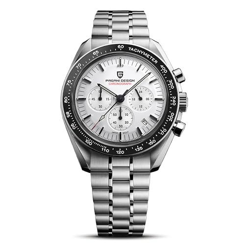 Pagani Design 1701 herrklocka vit urtavla män kvarts kronograf Japan VK63 rörelse rostfritt stål armband 100 m vattentålig sportklocka., A-1701-vit måne, Modern