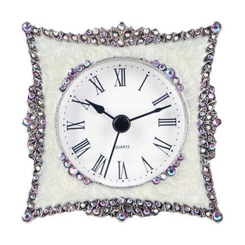 NIKKY HOME Tenn elegant och söt kvarts analog bordsklocka med kristall rosa strass 8,8 cm vit och rosa