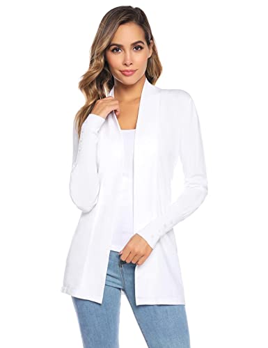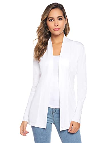 Irevial Damkofta långärmad tröja cardigan lätt finstickad jacka elegant stickad kappa i enfärgad casual normal tröja kappa med öppen framsida stickad tröja ytterkläder lång S-XXL, Vit, XXL