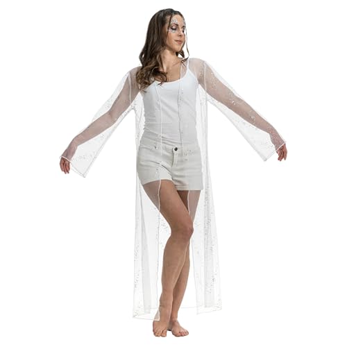 Chaks Lång sommar cardigan för kvinnor, genomskinlig festivaljacka med glitter, lätt täckning, festival, karneval