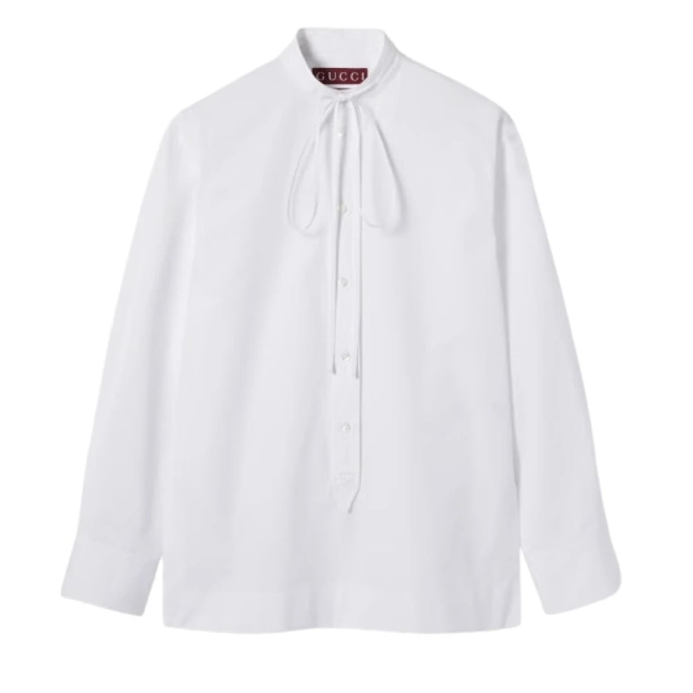 Gucci, Blusar & Skjortor , Dam, M, Bomull, Vit Bomull Poplin Långärmad Topp