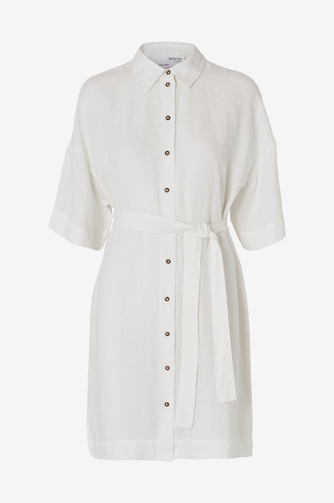 Selected Women - Linneklänning slfLinnie 2/4 Short Linen Shirt Dress - Vit