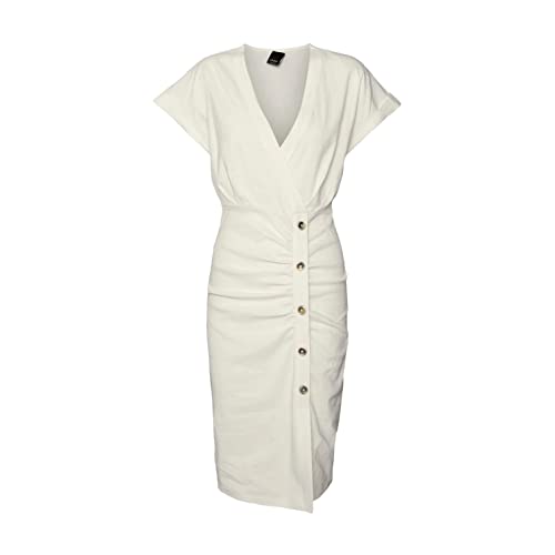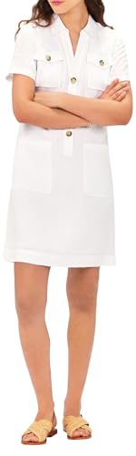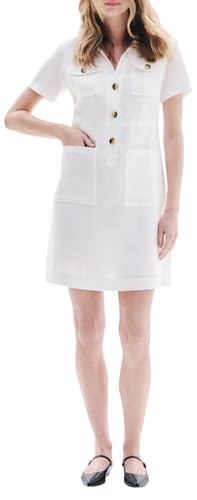 Hotouch sommarklänning dam button down linneklänning strandklänning casual v-ringad miniklänning kortärmad A-linje klänning volangkuvert klänningar, Vit, M