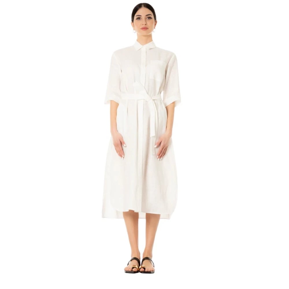 Maison Margiela, Klänningar , Dam, M, Linne, Linneklänning - Vit, Krage, Fickor