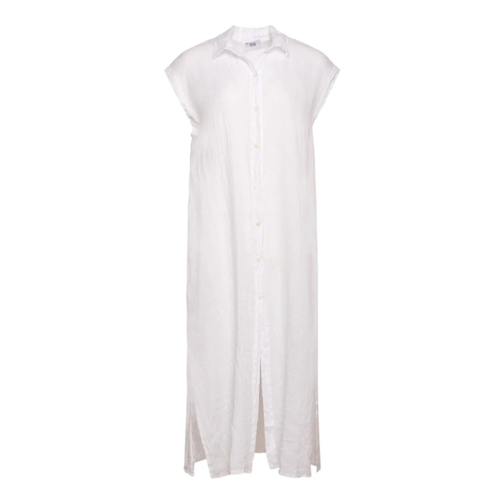 Tiffany, Klänningar , Dam, M/L, Linne, Vit Linneklänning Eva Stil