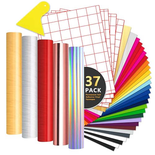 37 stycken Vinylfolier Plotter Självhäftande - Permanent Vinyl Plotterfolie 20cm * 30,5cm - överföringsfilm, Plotterverktygsskrapa, Borstad metallfärg för Cricut, Festdekoration, Hantverk.