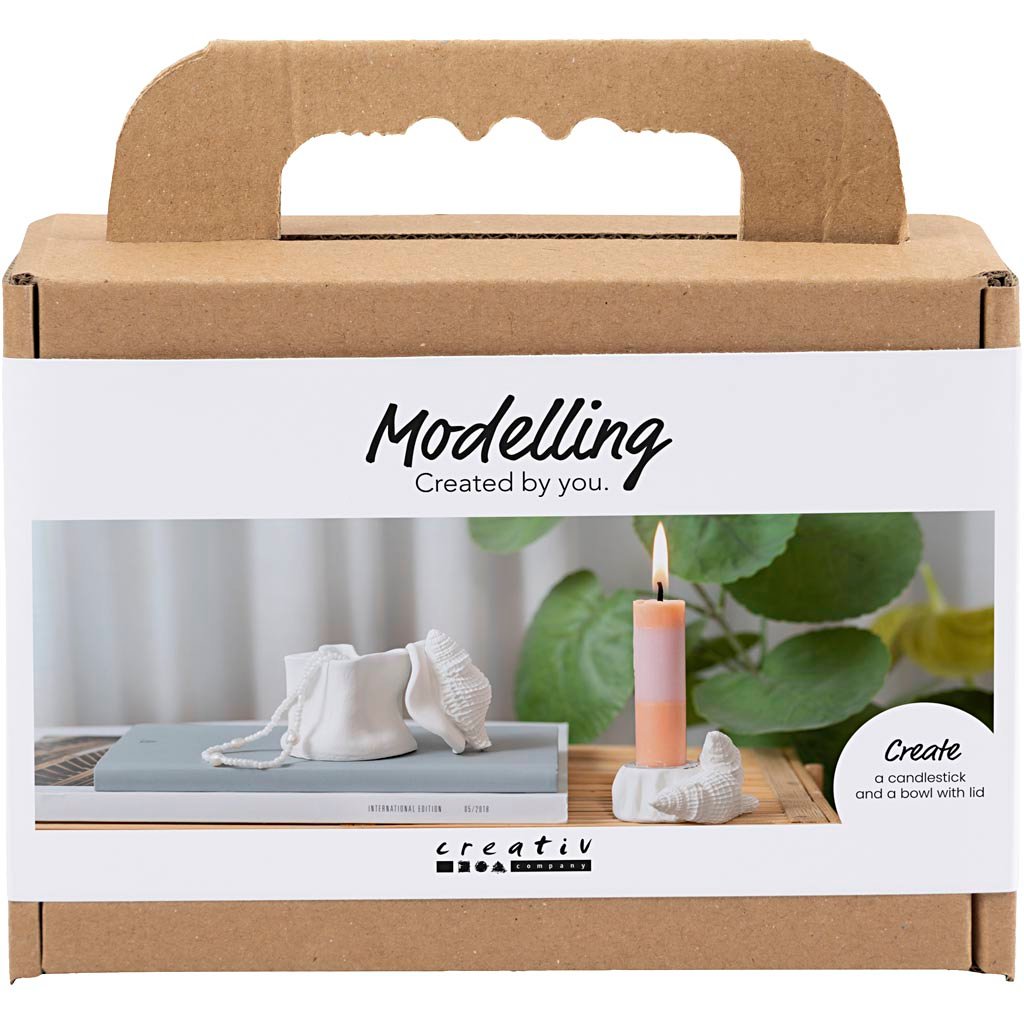 Mini DIY Kit Modellera, Ljushållare med skal, off white, 1 förp.