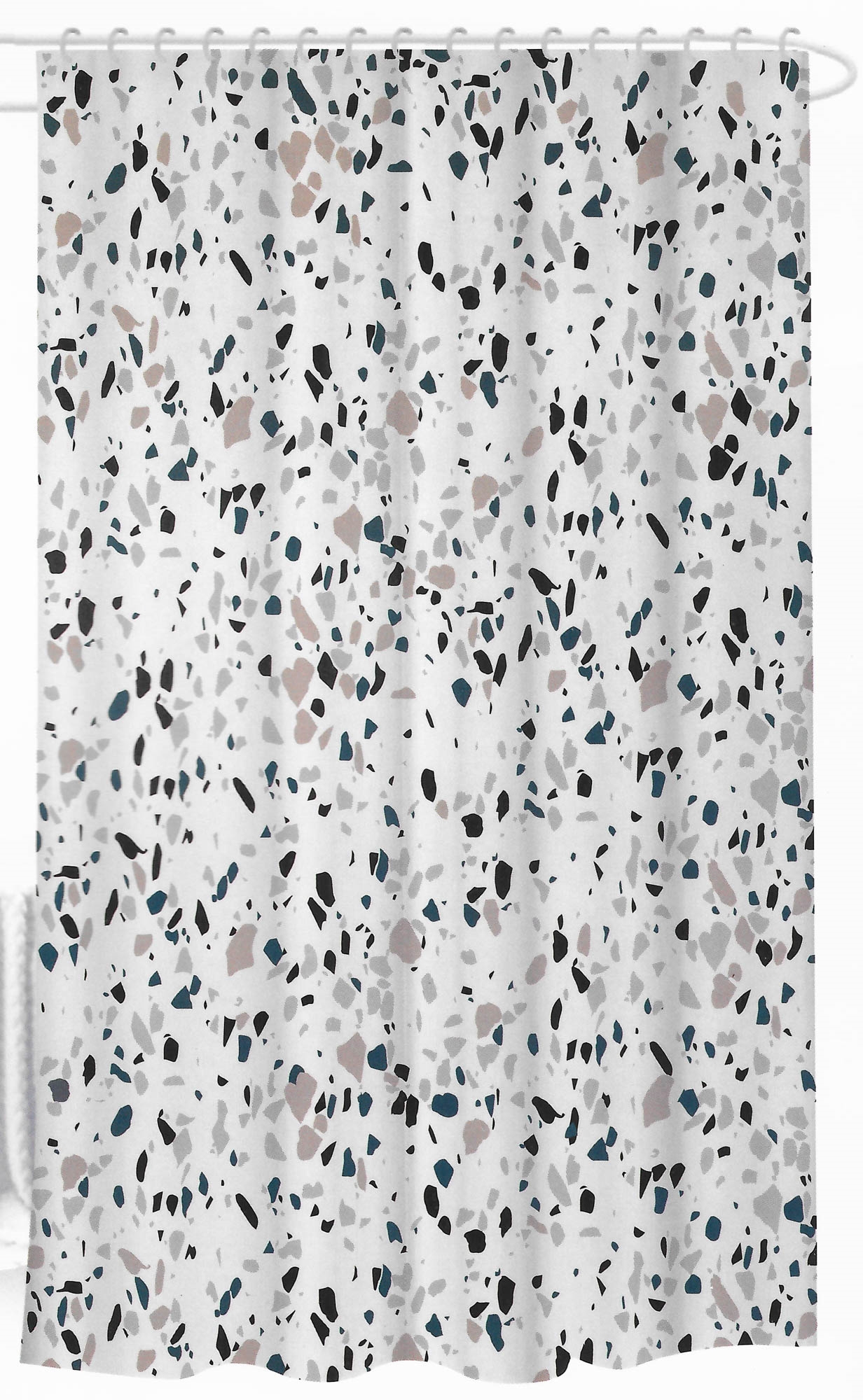 baddraperi - 180x180 cm - Vit med färgat mönster - duschdraperi redo att hänga