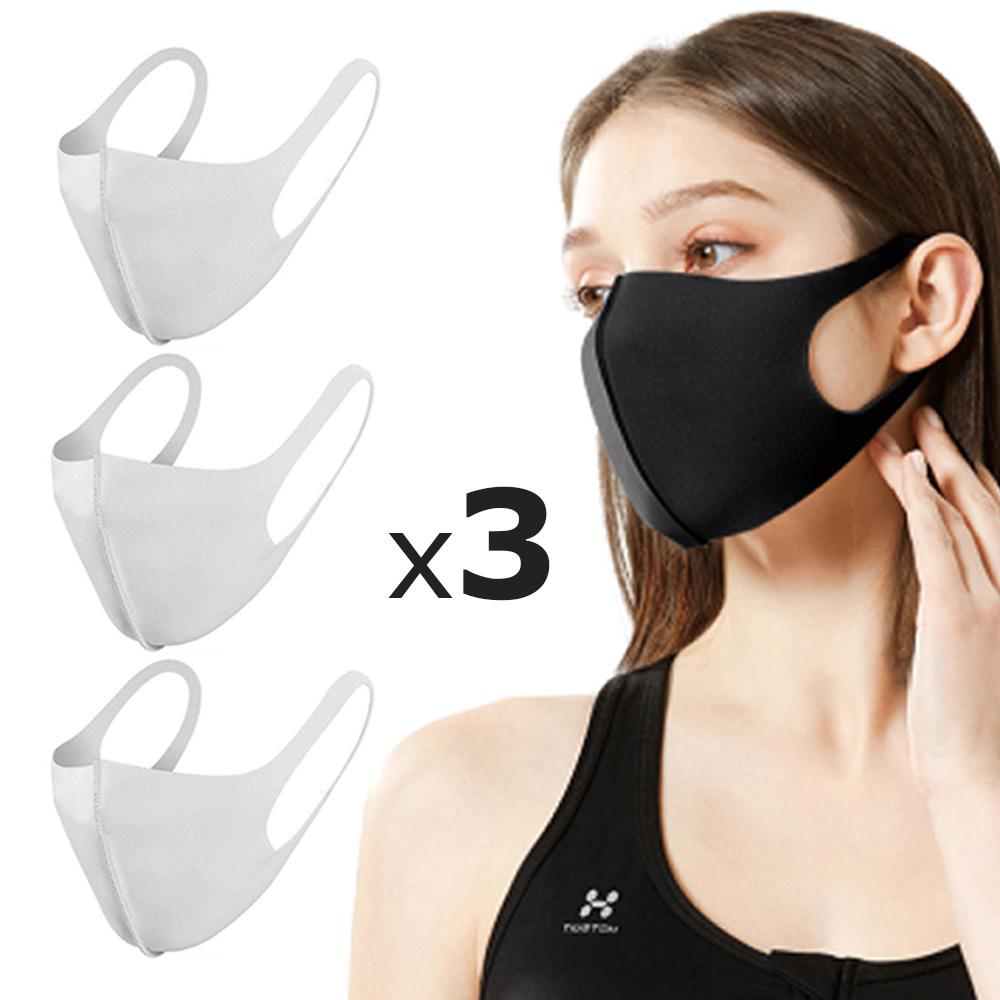 3 Pack Tvättbar mask Munskydd Skyddsmask Vit ((Vuxen) Vit - 3st)