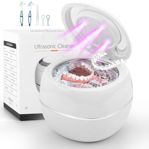 Ultraljudsrengöringsanordning för tandproteser, 42 000 Hz, 180 ml, ultraljuds-UV-rengöringsanordning, 30 W, ultrasonic-rengörare för tandproteser, aligner, retainer och munskydd (vit)