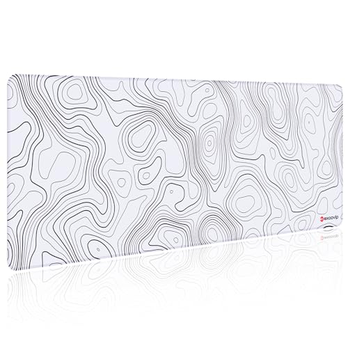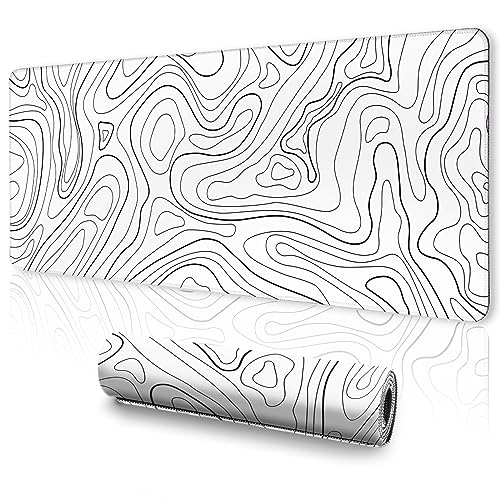 Vit Topografisk Musmatta XL - Stor Spelmusmatta för Skrivbord, Skrivbordsdyna, Utökad Svart och Vit Topo Skrivbordsmatta i Full Storlek