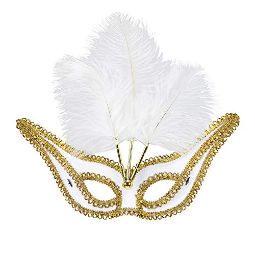 Widmann 03656 ögonmask med fjädrar, kvinnor, vit, one size