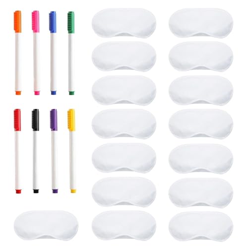 15-delad vit ögonmask, 8 graffitipennor, sömnögonmask, blank gör-det-själv-ögonmask, sömnmörkläggningsögonmask, reseögonmask, mjuk och bekväm ögonmask