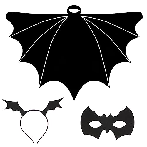 Veroda Fladdermusdräkt, svart, fladdermus, vingar, kappa, hårtvål, ögonmask för halloween, karneval, kostym (barn)