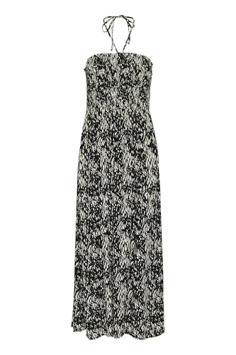 KAFFE Kvinnors maxiklänning straplös smock topp slips hals A-Line kjol tryckt, Svart/vit grafisk orm, 36