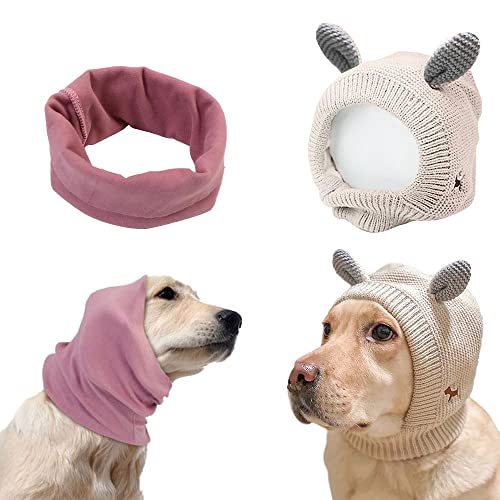 Tysta öron för hundar – ångestskällande skydd, muffar, orm för bullerskydd – 2 st hörselmuffar, fyrverkerier anti-ångesthatt för stora hundar (rosa och vit)