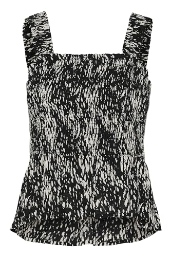 KAFFE Dam smock topp ärmlös fyrkantig hals peplum tryckta breda remmar, Svart/vit grafisk orm, 38