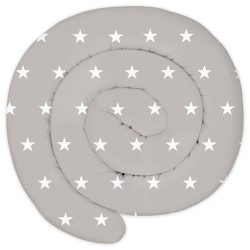 XXL sängorm kudde amningskudde sängrulle sängkantsskydd prydnadskudde sängomgivning orm XL handgjord Vita stjärnor på grått 300 cm Oeko-Tex-certifikat