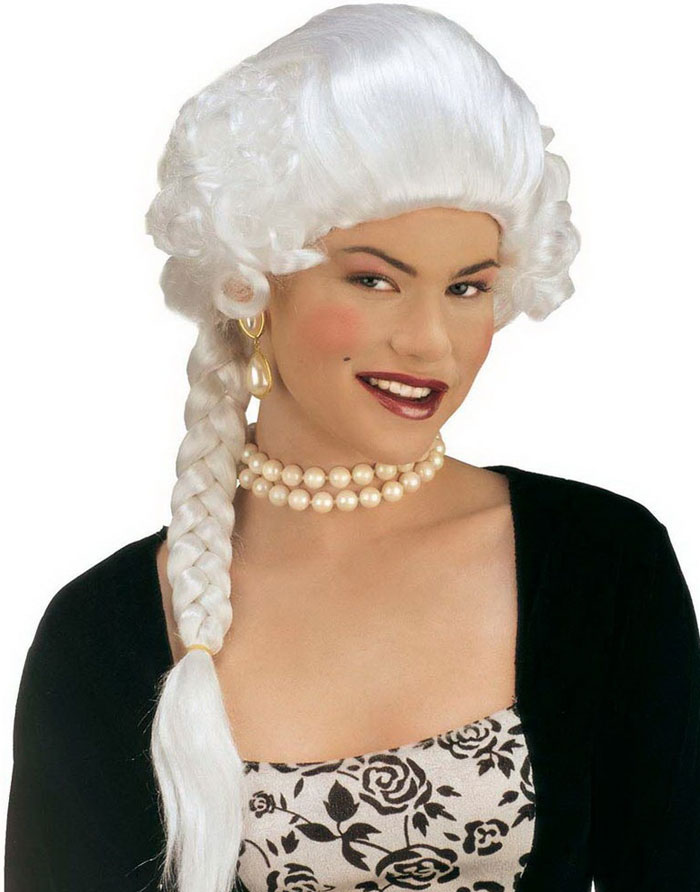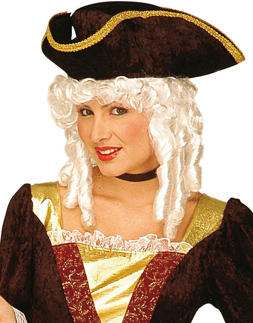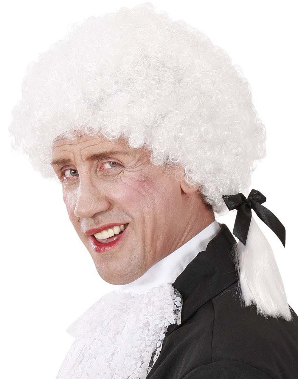 Mozart - Vit Peruk med Lockar och Hästsvans