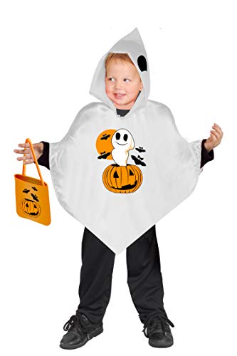 Ghost Baby Poncho disguise fancy dress Halloween boy (One size 3-6 years) with Trick-or-Treat bag