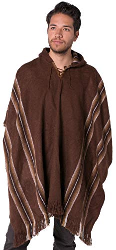 Gamboa Alpacka poncho för män, stickad ullponcho med huva, kappa, herrponcho, grå och Vit, en storlek