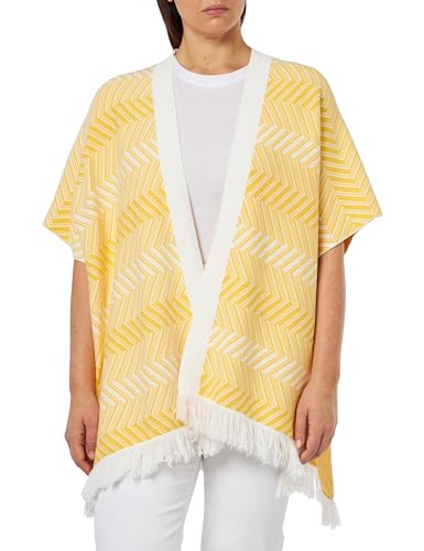 SIDONA dam stickad poncho 19022960-SI01, gul vit, XS/S, Gul vit, XS/S