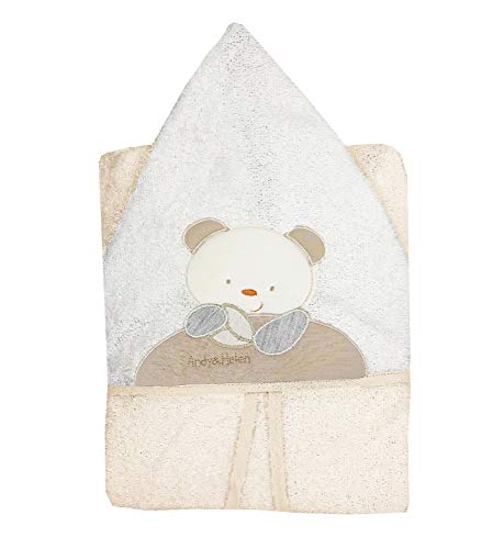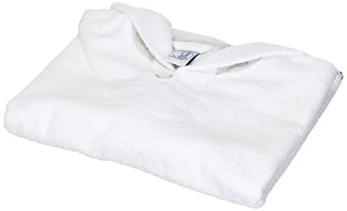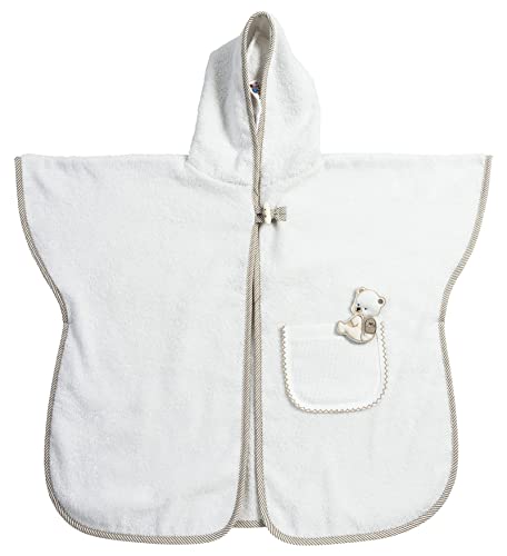 Filet - Bath Poncho för spädbarn och barn upp till 2 år, badklänning med huva av bomullstusshandduk; broderad Aida tygficka, tillverkad i Italien; en storlek, vit och taupe