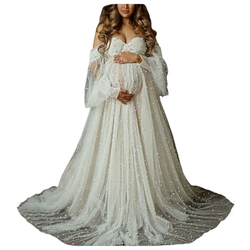 Gravidfotografi Klänning Skarvad Mesh En-skulder Gravid Kläder Puffärm Gravid Klänningar
