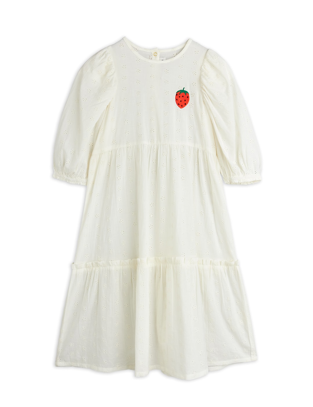 Mini Rodini GOTS Strawberry Klänning Med Puffärm White White 128/134 cm Vit 92/98 cm kvinna