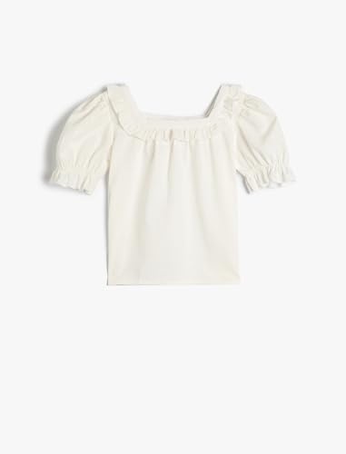 Koton Girls's Crop Asymmetric Cut Back Button Closure Short Puffärm bomullsblus, Vit (00), 6-7 �r