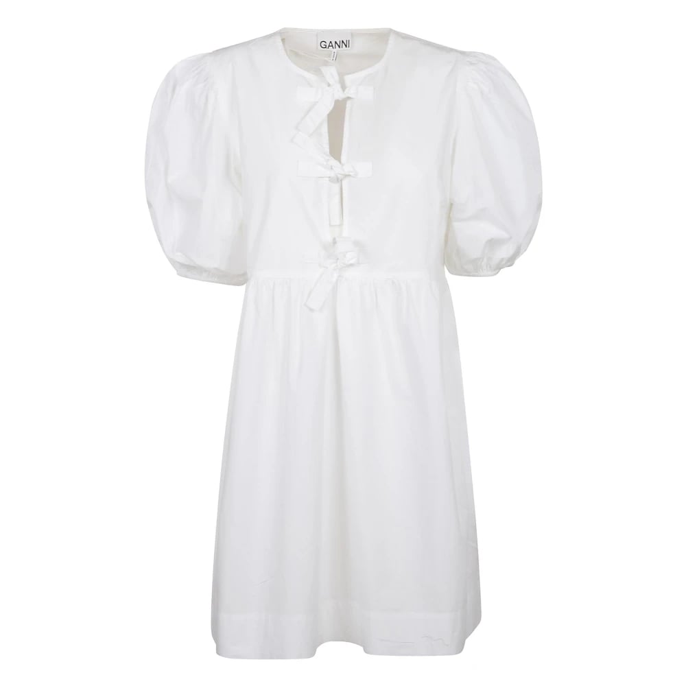 Ganni, Klänningar , Dam, M, Bomull, Kort Klänning med Rund Hals och Puffärm
