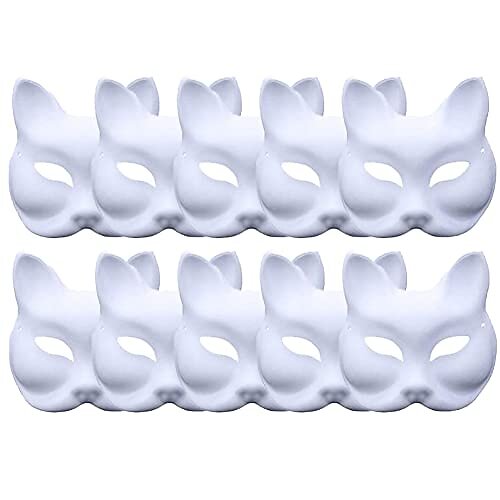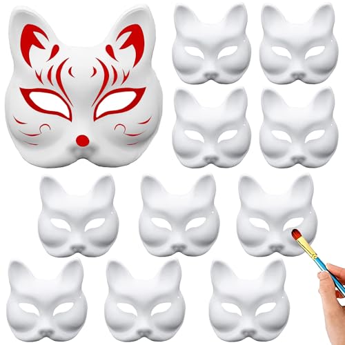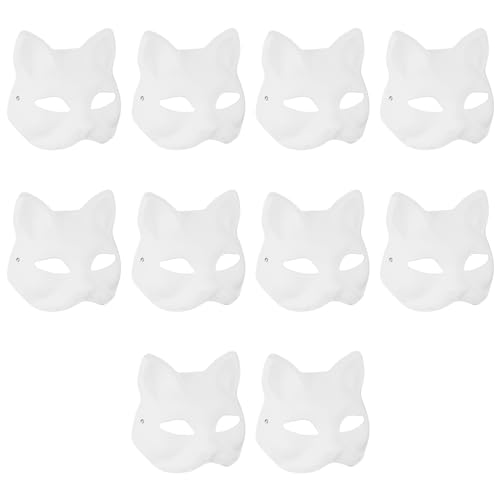 AIOUHMYM 10 st gör-det-själv tomma vita räv kattmasker, japansk stil halvansikte handmålade masker, perfekt för gör-det-själv, halloween, karneval, fest, barn