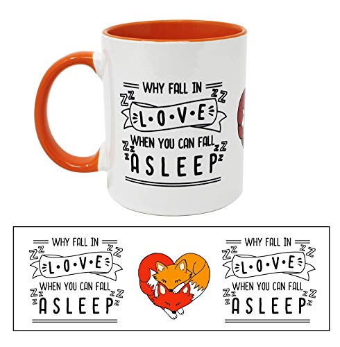 Close Up Rolig rolig mugg – Why Fall in Love – räv – vit premium kaffekopp, handtag och insida orange – 320 ml