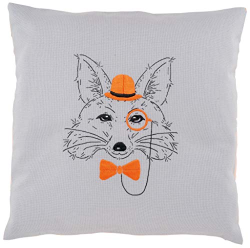 Vervaco stickkudde med kuddfodral räv med melon, bomull, vit, 40 x 40 x 0,3 cm