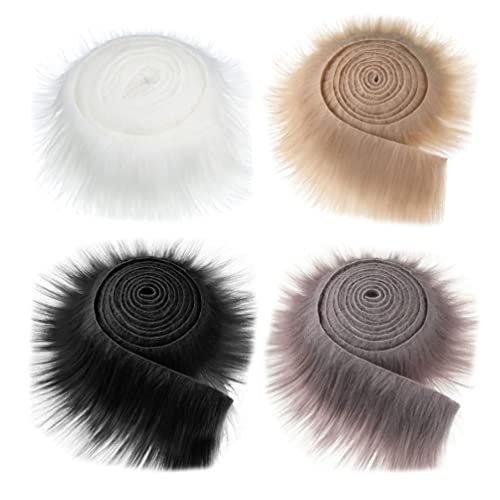 ARTIBETTER 4Pcs Faux Päls Trimband Brun Vit Räv Päls Tyg Shaggy Artificiell Rand Band Trim För Diy Hantverk Kostym Dekoration Semester Kransar Party Dekor Kostym Diy