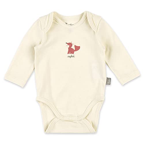 Sigikid Långärmad babyflicka, av ekologisk bomull, för nyfödda, flickor och pojkar i storlekarna 50 till 68, underkläder, body för spädbarn, vit/räv, 56, Vit/räv, 56 cm