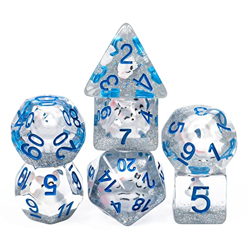 Cusdie Set med 7 tärningar, D&D-tärningar, set med polyedriska tärningar fyllda med djur, för rollspel, spelet Dungeons & Dragons, MTG Pathfinder (vit räv)