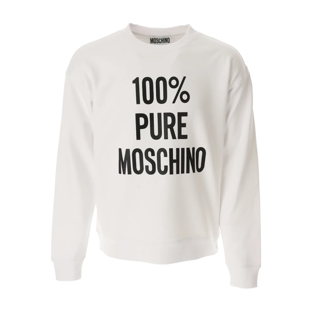 Moschino, Sweatshirts & Hoodies , Herr, L, Ren vit sweatshirt med framsida slogan