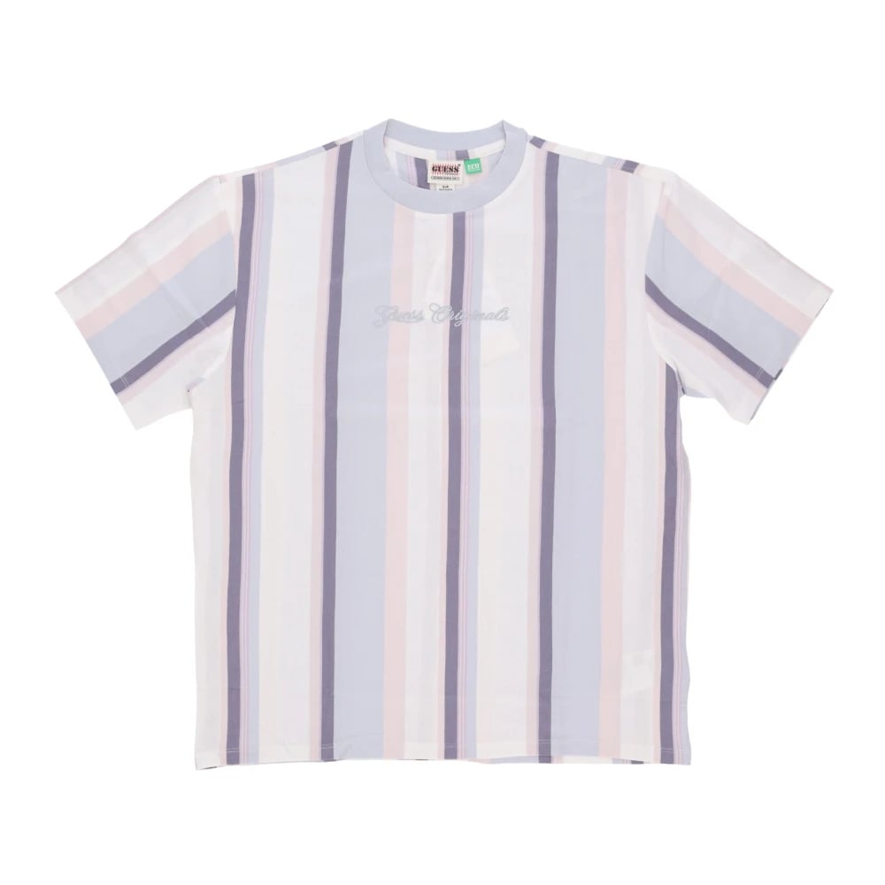 Guess, Toppar , Herr, M, Bomull, Randig Vertikal T-tröja Ren Vit