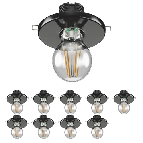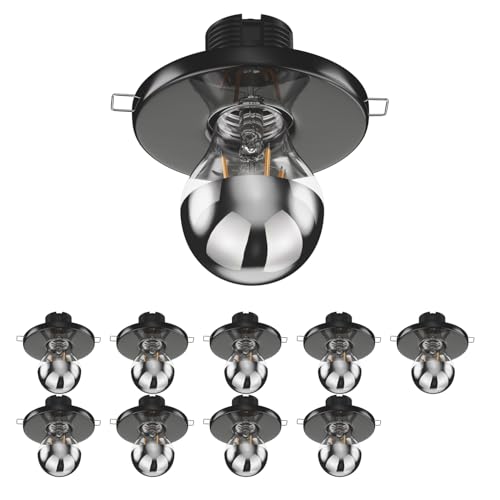 ledscom.de 10 st E27 porslin infälld taklampa TELA, rund, svart, 99mm, inkl. glödlampa 646lm 6,309W vit