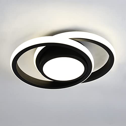 Schindora Modern LED-taklampa 36W 50cm med fjärrkontroll, Geometri Rund Svart Vit Dimbara taklampor Passar till vardagsrum, sovrum, kök