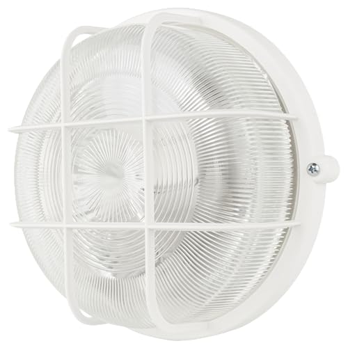 Velamp rund vägg/taklampa 22 cm. i plast + glas E27 max 60 W. IP44: kan installeras inomhus eller utomhus, polykarbonat, 60 W, vit