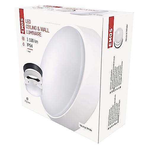 EMOS – LED-vägg-/taklampa, rund, utbytbar ram – vattentät – neutral vit – 1100 lm – 14 W (istället för 75 W glödlampa) – 25 000 timmar - Spridningsvinkel 120° – för utomhusbruk – Ø 21,5 cm