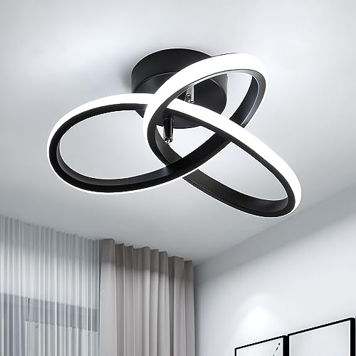 Comely Modern LED-taklampa, 22W 2500LM taklampa i akryl, rund svart LED-ljuskrona för vardagsrum sovrum kök hall, kall vit 6500K