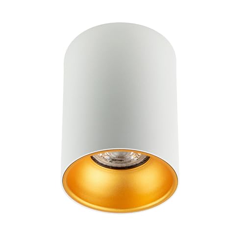 EDO Takspotlight GU10 ZAMA Takspot Rund Vit med Guldpläterat Centrum Spotlight, Taklampa - Ø80x110mm Överbyggnadslampa 230V - Takmonterad Lamp i Aluminium för Sovrum, Vardagsrum, Kök